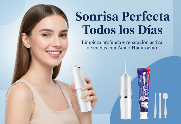 "Mi dentista me recomendó un irrigador y elegí este pack por el ácido hialurónico. La diferencia en mis encías en dos semanas es brutal, se ven más sanas y menos rojas. ¡Lo recomiendo 100%!"