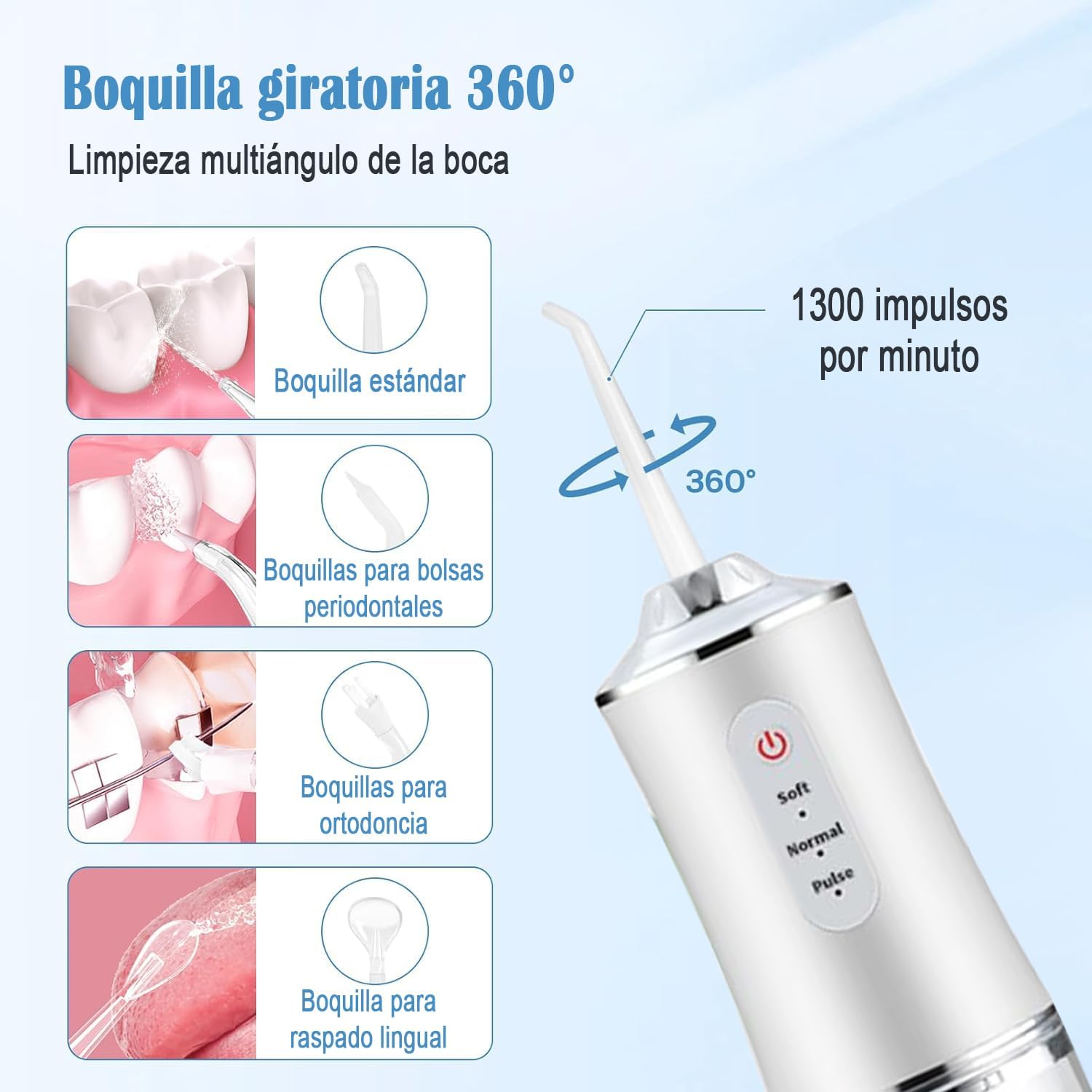 | Irrigador Dental Profesional | 3 modos (Suave / Normal / Pulso) + 4 boquillas |