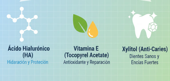 🔹 Ácido Hialurónico (HA):** Hidrata y promueve la regeneración del tejido gingival.
